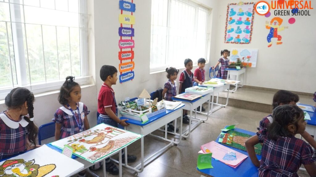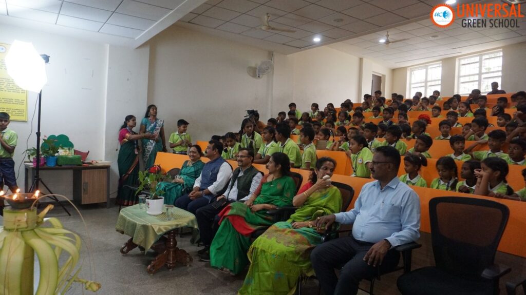 On 7th November 2025, Universal Green School hosted its vibrant “Seeds to Trees” exhibition, showcasing the creativity and environmental awareness of our young learners. The event was graced by Mr. R. Upendra Shetty, Mr. Ganesh V. Thadgani, and Dr. Meera Krishnappa, who shared inspiring insights about sustainability and nurturing young minds.