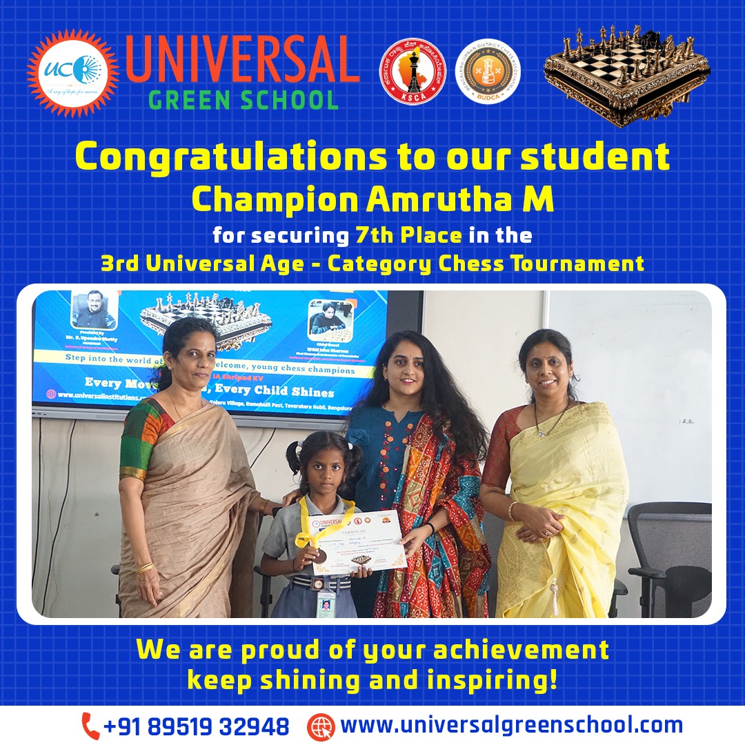 We are thrilled to announce the remarkable achievements of Ayush Madgond, a proud 4th Standard student of Universal Green School, who recently stole the spotlight at the Intra Club Cricket Tournament. Ayush’s exceptional talent and sporting spirit earned him two prestigious awards: These accolades are a testament to his dedication, skills, and sportsmanship on the cricket field. We congratulate Ayush for his outstanding performance and wish him even more success in the future. At Universal Green School, we continue to …